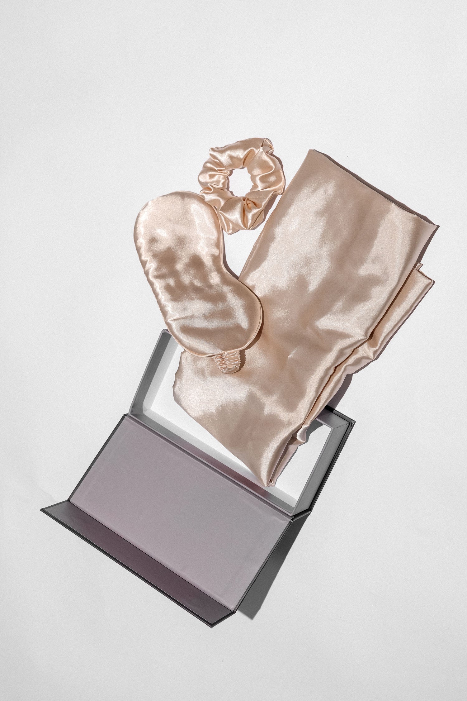 Set includes: satin pillowcase, satin eye mask, and satin scrunchie