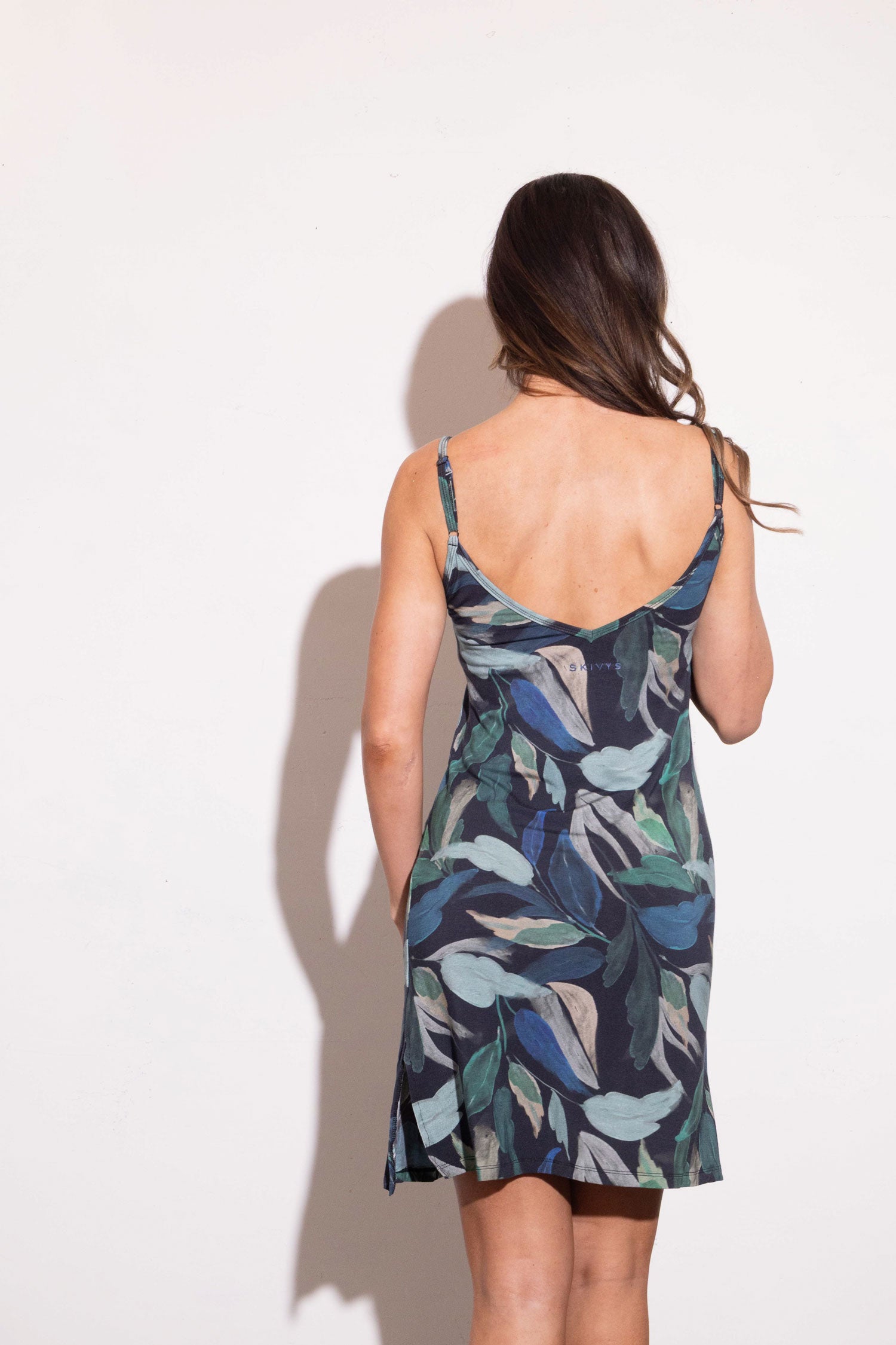 Sexy, slinky, and effortlessly bold—the Slip Dress – Blue Leaves is the piece you’ve been waiting for. With adjustable straps and a smooth, body-skimming fit, this braless slip dress is designed for both lounging and layering. Wear it to bed for the coolest, comfiest sleep or dress it up with a jacket for a night out.
