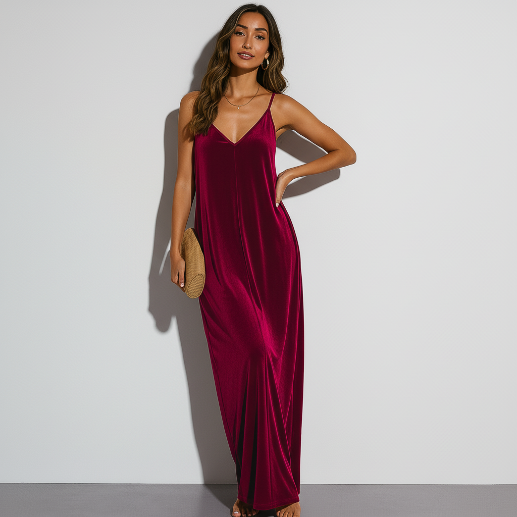Your go-to lounge dress just got a luxe upgrade. The Goddess Gown – Crimson Velvet takes our bestselling silhouette and reimagines it in soft, stretch velvet. Flowing, ankle-skimming, and silky to the touch, this red velvet maxi dress is as dreamy as it is versatile.